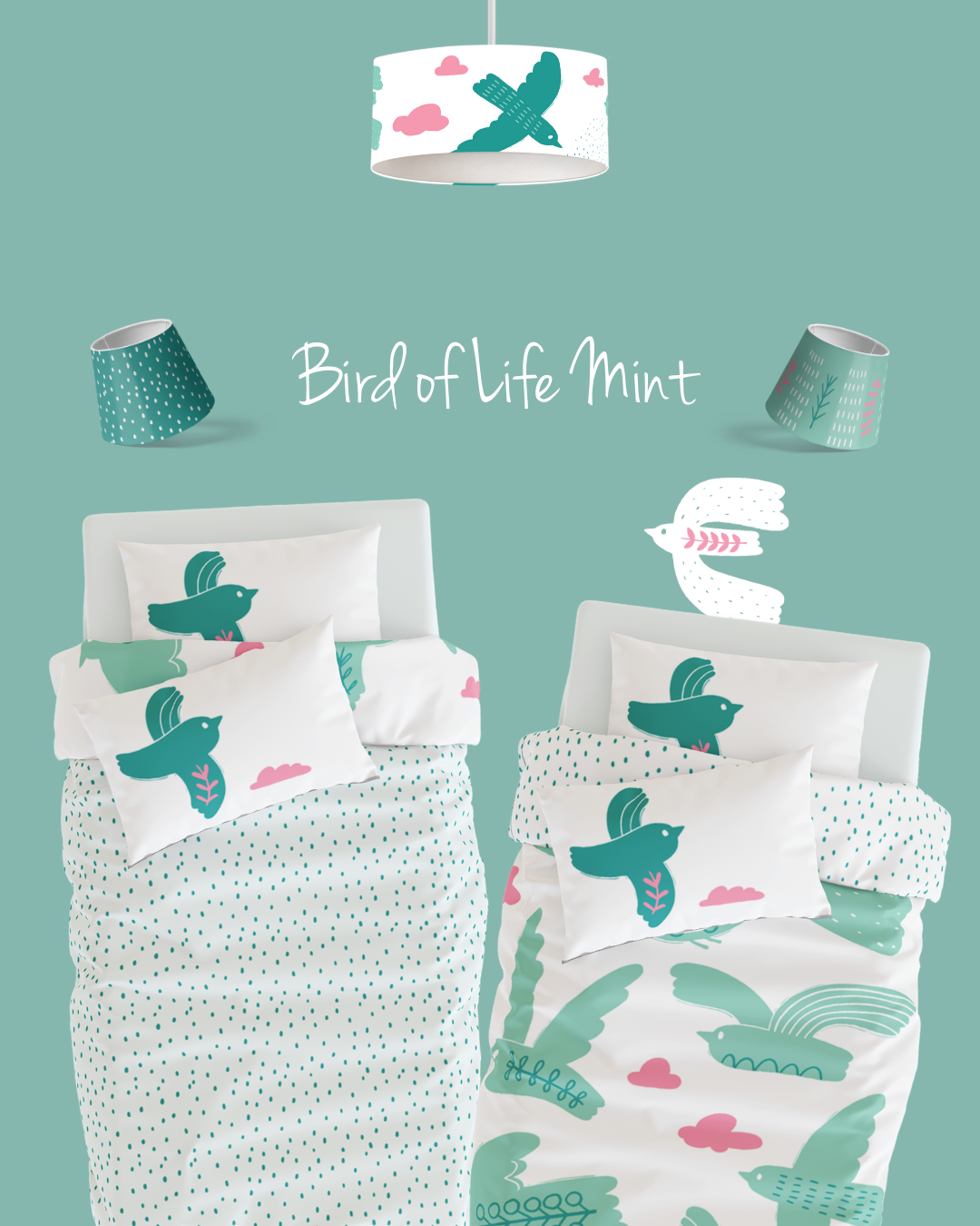 Bird of Life Nevresim Seti, Mint Yeşili, 140x200cm